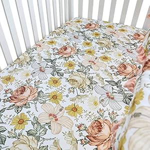 3PCS Crib Bedding Set Baby Minky Blanket Nursery Bed Skirt Set for Baby Girls & Boys (Retro Chrysanthemum,3pc Set)