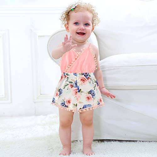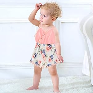 Simplee kids Baby Girl Kint Rompers Fall Sleeveless Pompoms Baby Girl Rompers 6-12 Months Little Girl Apricot Overall Jumpsuit Outfit