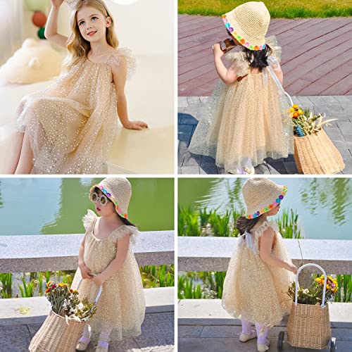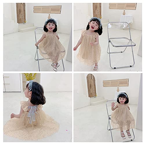 AGQT Infant Girls Tulle Tutu Dress Flutter Sleeve Layered Summer Babydoll Birthday Tea Party Gowns Baptism Christening Pageant Sundress Gold Apricot-Sequin Dot Size 6-12 Months