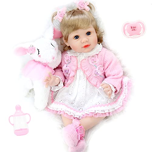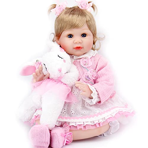 Aori Lifelike Reborn Baby Dolls 22 Inch Realistic Girl Dolls with Bunny Toy Gift Set for Kids Age 3+