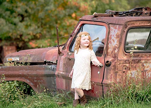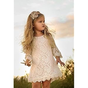 Flower Girl Dress, Lace Dress 3/4 Sleeve Dress (4T, Ivory)
