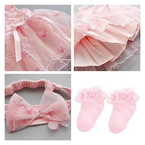 PACKAGE INCLUDING: 1 baby dress, 1 headband, 1 pair of baby shoes 3 pcs set or 1 baby dress, 1 headband 2pcs set