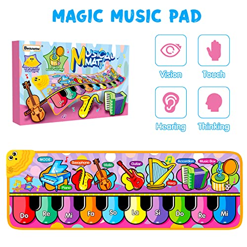 Baby Musical Mats,Music Toys Child Floor Piano Keyboard Mat, Kids Soft Touch Playmat with 7 Instrument Sounds, Early Education Toys Birthday Gifts for Toddler Girls Boys Age 1 2 3 4