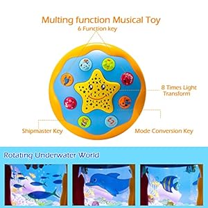 【360 Degree Ocean World Rotation】The ocean rotating projector toys for baby tummy time, infant toys 0-3 3-6 months with more than a few of sea animals, like dolphins, octopus, clownfish, and so on. Making baby feel like they’re in a fairy tale undersea world, and stimulating babies unlimited imagination.