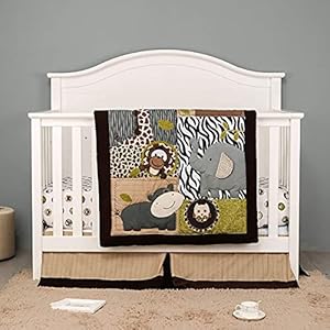 Brandream Jungle Crib Bedding Sets for Baby Boys Elephant Animal Zoo Nursery Bedding Set Zebra Giraffe Monkey Hippo Owl Bear 3D Pattern | 3-Piece Nursery Set | Baby Comforter, Crib Sheet, Crib Skirt