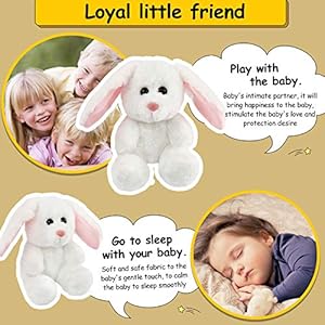 PREMIUM QUALITY MATERIAL—This bunny stuffed animal is meticulously sewn with soft fabrics and filled with 100% pp cotton, which is enduring and persistent. The super soft fur makes it impossible to resist to touch. You’ll be able to be assured that this bunny is durable for kids to play with and its hair is not going to easily shed.