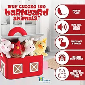 Bundaloo Plush Farm Animal Toys with Sounds – Plushie Play Set with Cute Talking Barn Animals in a Barn Carrier