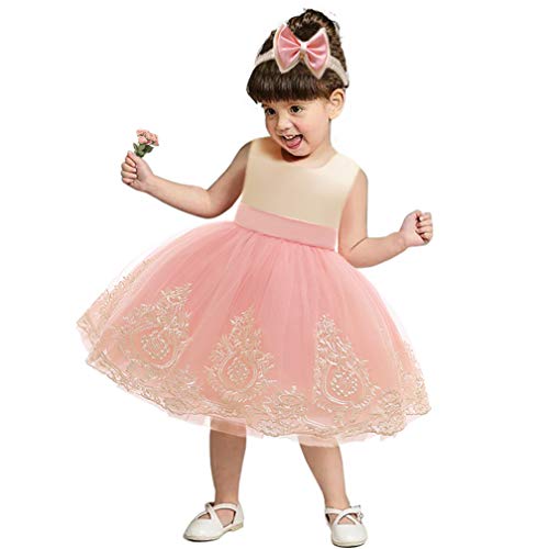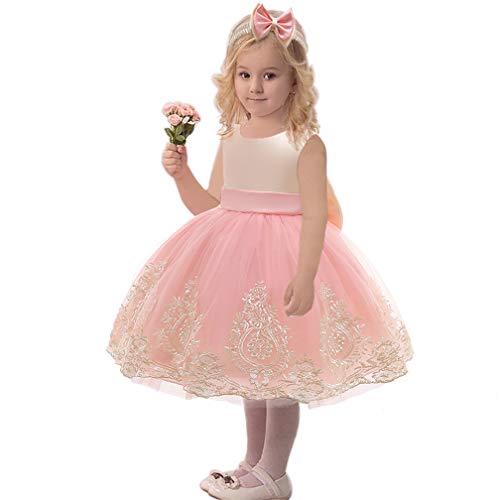 CMMCHAAH Toddler Girl Big Bowknot Dresses Baby Little Girls Tulle Lace Wedding Party Ball Gown Dress (Pink,120)