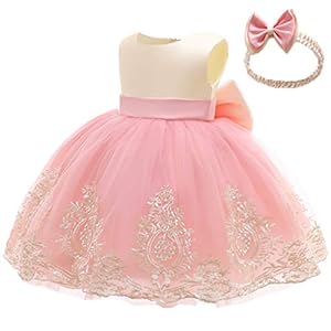 Infant Girls Bowknot Dresses Little Baby Girl Toddler Lace Embroidery Ball Gown Dress with Headwear