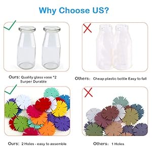 【FLOWER CRAFT FOR 2 】Tons of felt flowers, colorful buttons and strings, 2 glass bottles (not like others plastic bottles) and 3 sheets of 3D gem stickers, and the like., this flower craft kit comes with the whole thing you’ll need!