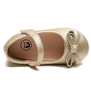 DADAWEN Toddler Little Girl Flower Girl Dress Shoes Cute Bow Girls Mary Jane Ballet Flats Party School Wedding Shoes Gold US Size 5.5 M Toddler