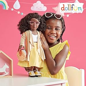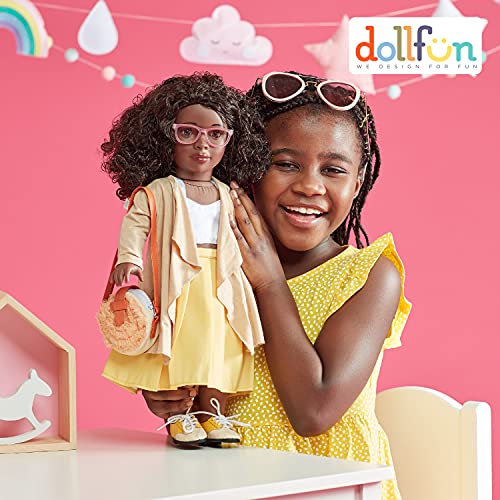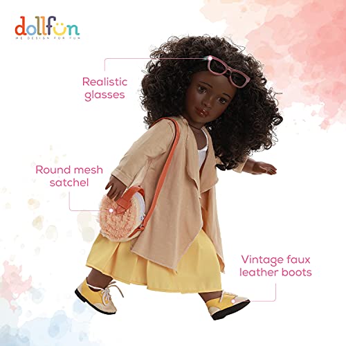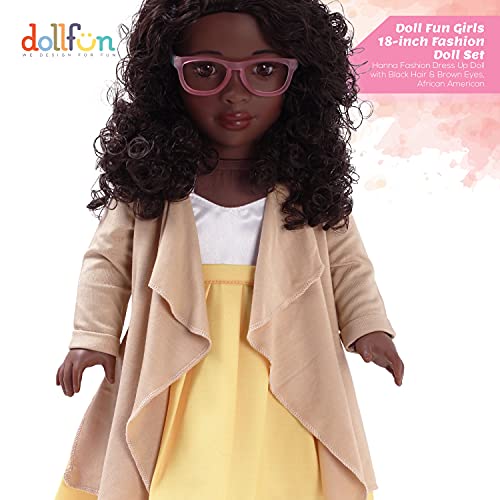 DOLLFUN World Girls 18 inch Fashion Doll Set Hanna(Africa) Fashion Dress Up Doll with Hair for Styling, Clothes, Shoes and Accessories. Black Hair and Brown Eyes, African American
