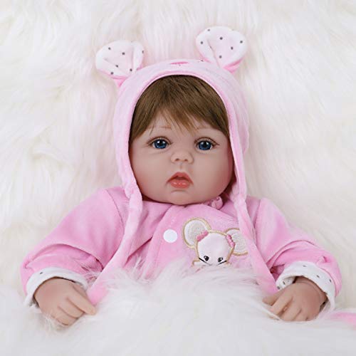 💖FEATURES – The Pink Mouse Girl baby doll has big blue charming eyes, handcrafted fluffy artificial hair which is very realistic. It can be shaped, combed, washed even cut for a better style. Our gift set comes with clothes, a matching pacifier and a feeding-bottle.