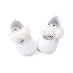 ENERCAKE Baby Girl Shoes Soft Sole Floral Newborn Infant Mary Jane Flats Princess Wedding Dress Shoes(0 Months-6 Months Infan, A-White)