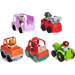 The vehicles in the Little People Across the Neighborhood Vehicle Pack are sized just right for little hands to snatch and roll around, letting toddlers explore the great big world around them by the use of their imaginations to create stories as they play. Send the firefighter racing into action in the To The Rescue Fire Truck. Serve up tasty treats with the Share a Treat Ice Cream Truck. Lend a helping hand for loading and unloading with the Assist A Friend Pick Up Truck. Sending the delivery boy zooming through town to feed hungry customers with the Have a Slice Pizza Delivery Car. And Assist the farmer generally tend to his crops with the Helpful Harvester Tractor. Each and every vehicle comes with a Little People character figure to “drive” as kids play!Where development comes into playFine Motor: As toddlers snatch and move the vehicles, they are strengthening dexterity and hand-eye coordination.Imaginative Play: With easy-to-snatch vehicles and figures, toddlers can use their imaginations to create stories as they play.
