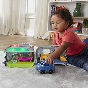 Kids can explore the “great outdoors” and act out their very own fun camping stories with the Little People Light-Up Learning Camper from Fisher-Price. Little campers can get the adventure began by packing up the figures into the car, attaching the RV, and rolling both vehicles along. Once “parked,” they may be able to open up the RV to expose a full playset packed with pretend camping fun, including 2 figures and 4 play pieces. As kids “camp,” they may be able to press the buttons on top of the RV to turn on lights, music, and 3 Smart Stages levels of educational songs and phrases. Use the globe button to make a choice a language: English, German, or French.