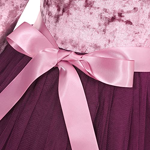 Flofallzique Toddler Velvet Dress Ruffle Long Sleeves Girls Tulle Tutu Dresses for Birthday Party (2, Plum)