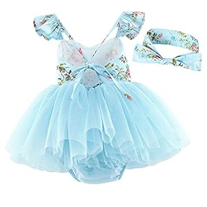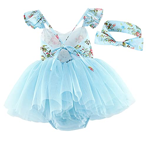 Flofallzique Summer Baby Girls Dress Tulle Wedding Birthday Party Infant Tutu Outfit+Headband(1, Blue)
