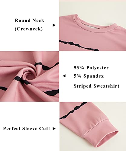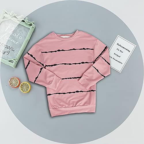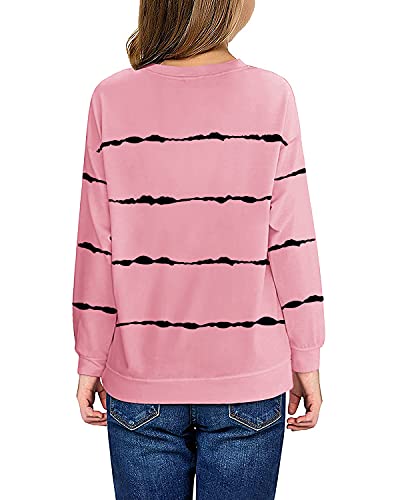 Haloumoning Girls Striped Color Block Sweatshirts Kids Tie Dye Crewneck Long Sleeve Pullover Tops 4-15 Years A-pink
