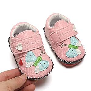HsdsBebe Baby Boys Girls Pu Leather Hard Bottom Walking Sneakers Toddler Rubber Sole First Walkers Infant Cartoon Slippers Crib Shoes, Butterfly/Pink, 12-18 Months M US Toddler