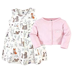 Hudson Baby Girls’ Cotton Dress and Cardigan Set, Enchanted Forest, 6-9 Months