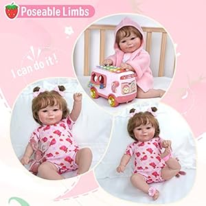 Adorable Girl: She has the soft and supple feeling of real skin and perfectly captures every nuance of newborn girl. Subtle, lifelike hand-painting face & body details that give her a sun-kissed glow, wavy brown hair that is hand-rooted and even delicate hand-applied eyelashes make this lifelike baby doll absolutely irresistible.
