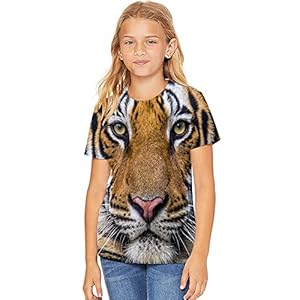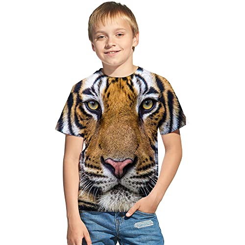 Kids 3D Print Graphic Tees Funny Tiger Short Sleeve T Shirts for Youth Boys Girls 4-14 Years(TG001,5-6 Years)