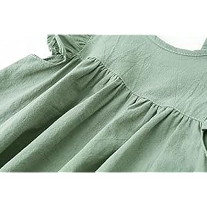 LYXIOF Toddler Baby Girl Cotton Linen Dress Ruffle Sleeve Halter Sleeveless Kids Casual Beach Dresses Green 90CM