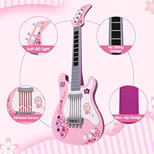 M SANMERSEN Kids Guitar for Girls Music Toys Guitar for Kids Toddler Electric Guitar with Strap Kids Pink Guitar Musical Instrument Toys for 3 4 5 Year Old Girls Gifts