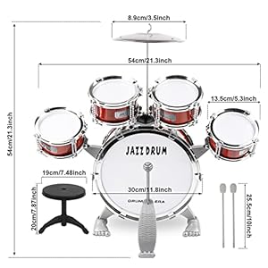 Stable Structure & High-quality Materials: Strong structure of stool and the drum set allows children to sit down safely and play drums. The jazz drum set is made of alloy, plastic and cardboard, which is light but strong and reliable. The drum sounds are loud and clear, allowing children to play wonderful music.