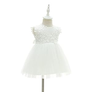 Meiqiduo Baby Girls Dress Christening Baptism Party Formal Dresses (3M/0-6Months, Ivory)