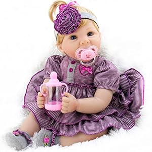 INCLUDES ALL ACCESSORIES NEEDED: Reborn baby doll girl comes in a collector’s gift box. The realistic newborn baby doll is dressed in a set purple outfits, she comes with a cuddly plush teddy friend. The reborn toddler doll comes with full set of accessories for taking good care of a newborn such as hair band, pink feeding bottle and magnetic pacifier.