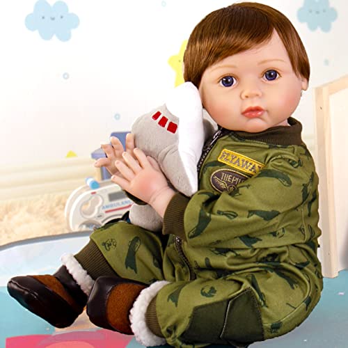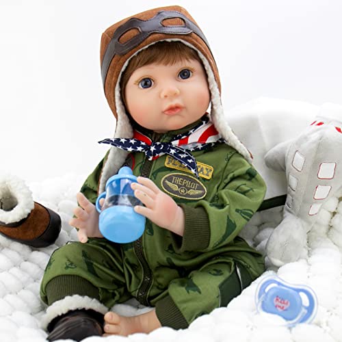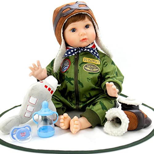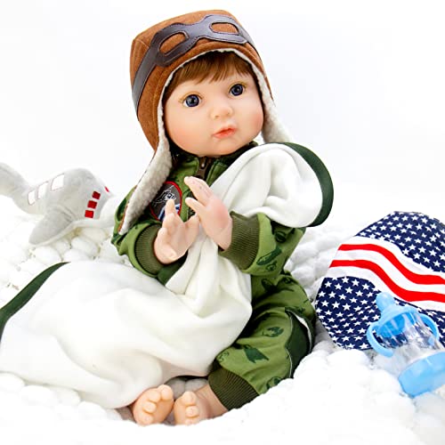 Friendly and Attentive Design: The pilot theme is attractive to both kids and adults. The real life baby doll is lovingly handcrafted from our exclusive soft vinyl, giving him a lifelike feel, including all the lines and creases of reborn baby doll. This reborn doll boy has a beautiful caucasian skin and a full set of hair, which is higher quality than the usual mohair. 22 inch reborn boy can fit in regular newborn size clothes.