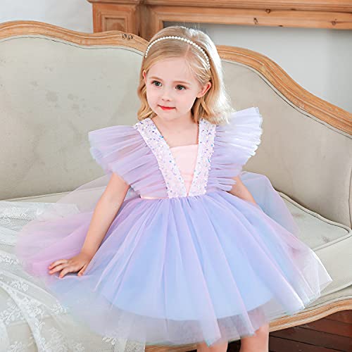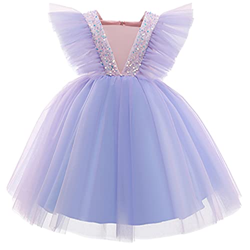 NNJXD Princess Girl Flower Dress Tulle Wedding Party Pageant Gown 738 Purple Size(100) 2-3 Years