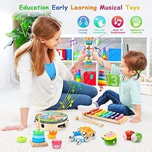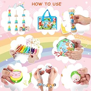 🎵[SAFE AND HEALTHY MUSICAL TOYS]: CPC Certified / Astm Certified. All baby music sets are made of high-quality non-toxic wood materials, with a smooth surface, don’t hurt the hands, Children can play with friends. They’re secure and reliable music toys for girls boys. These colorful and cute instruments are ideal to assist develop your children’s musical talent.