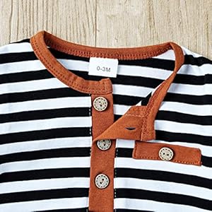 ODASIRA Newborn Baby Boy Clothes Infant Long Sleeve Stripes Romper Fall Winter Outfits Solid Pants 3Pcs Set Orange 0-3 Momths, 0-3 Months