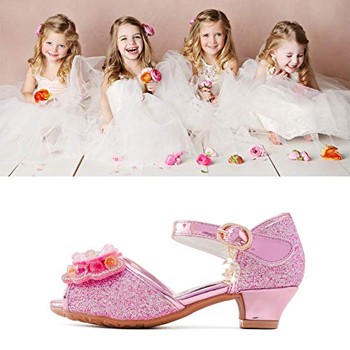 Osinnme Girls Heeled Sandals for Wedding Princess Size 2 M Wedge High Heel Sandals Girls Cute Dress Shoes Platform(02Pink 2)