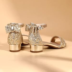 PANDANINJIA Ivy Girls Heels Sandals Little Girls Dress Shoes Gold Size 12 Bow Wedding Flower Girl Shoes