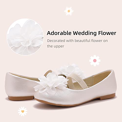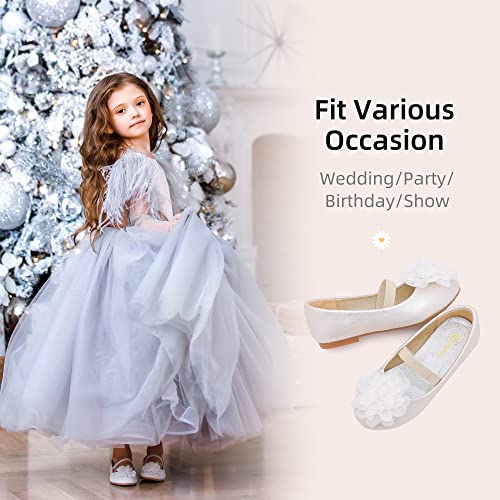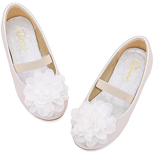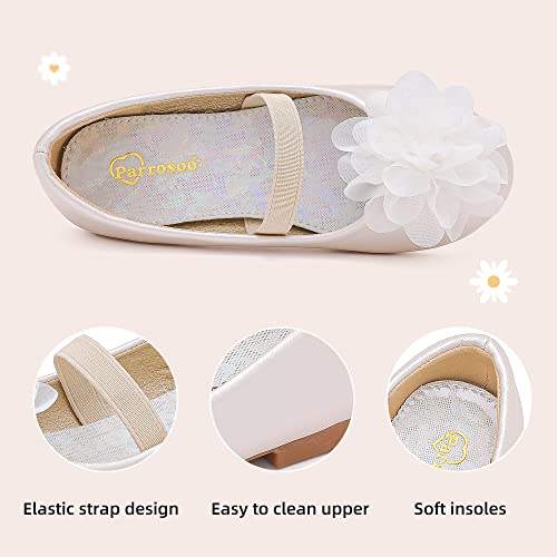 Parrosoo Flower Girl Shoes Toddler Girls Flats Low Heel Princess Kids Shoes Champagne Shoes for Girls Dress Shoes Birthday Party Wedding (8201Champagne 12)