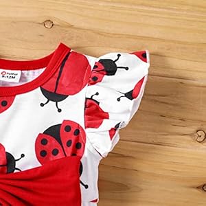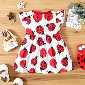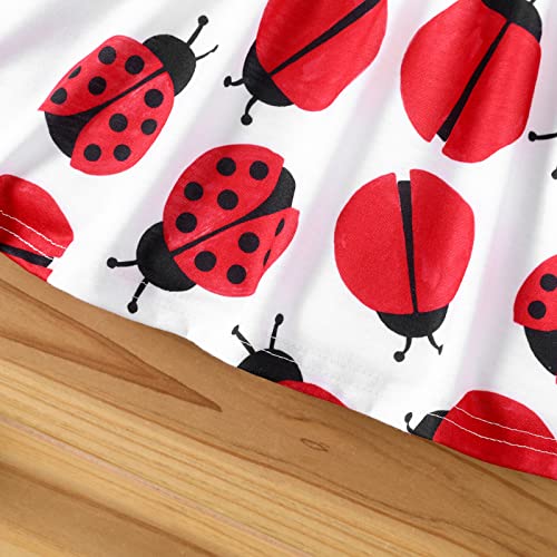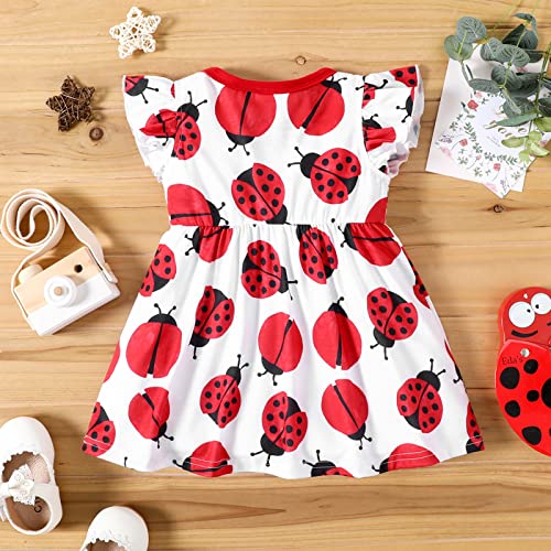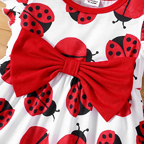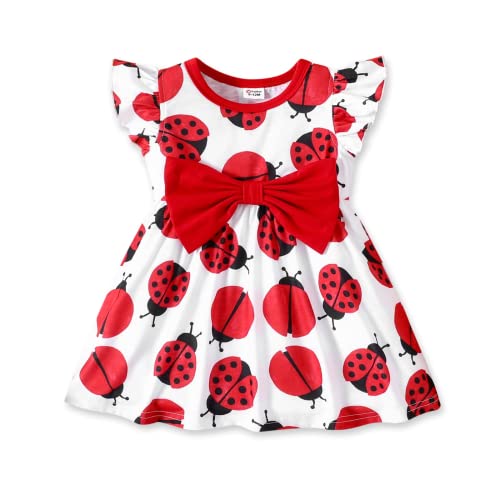 PATPAT Baby Girl Dress Cute Newborn Infant Girls Ruffle Sleeve Bowknot Dress Princess Casual Dress Ladybug 3-6 Months