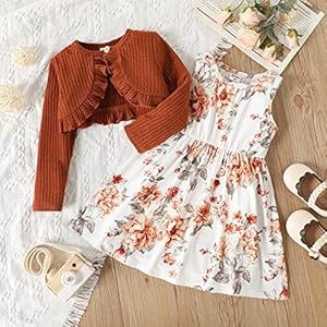 PATPAT Toddler Girl Dress and Cardigan 2 Piece Girl Floral Print Sleeveless Dress and Ribbed Cardigan Set 18 Months-6 Years