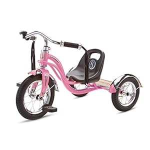 Make sure this fits by entering your model number. The Schwinn Roadster Kid’s tricycle is designed with a unfashionable look and a steel trike frame, and its low center of gravity makes it easy to ride and perfect for young riders Its adjustable sculpted seat moves back and forth with five lock in positions, making it ideal for growing legs or different members of the family The rear deck is made of genuine wood with burnt in Schwinn logo, whilst the scalloped chrome fenders provide a fashionable ride Take to the streets in style with mustache style cruiser bars and a classic bike bell; Flowing fabric tassels make this an excellent gift for kids who love classic biker style
