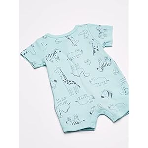 Simple Joys by Carter’s Unisex Babies’ Snap-Up Rompers, Pack of 3, Aqua Blue Forest Animals/Grey Mini Stripe/White, 0-3 Months