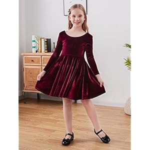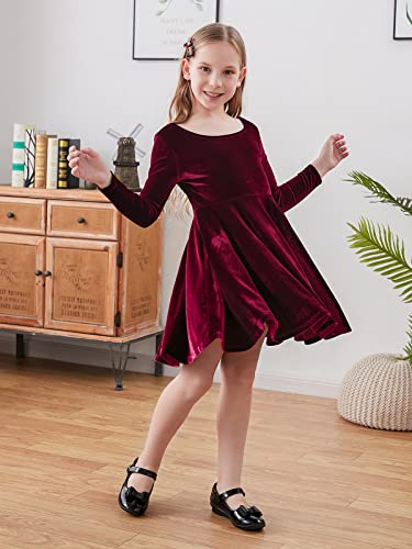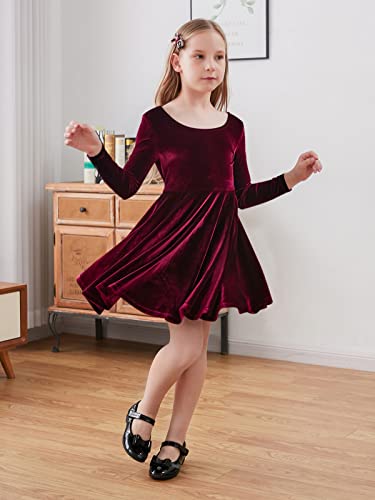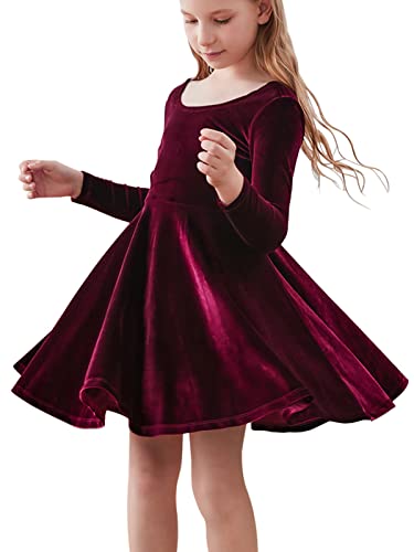 SISIDOLLS Toddler Girls Velvet Twirl Dresses Long Sleeve Swing A-Line Twirly Skater Dress for Christmas (Burgundy, 6-7Y)