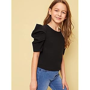 SOLY HUX Kids Girl’s Summer Puff Short Sleeve Round Neck Cute Blouse Pullover Top Black 11-12Y