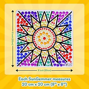 Designs included on this SunGemmers craft kit: Sun and Rainbow. Each and every SunGemmer measures 8 x 8 inches.