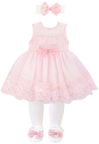 Set includes matching dress, shoe, headband, tights, long sleeve bodysuit and mittens