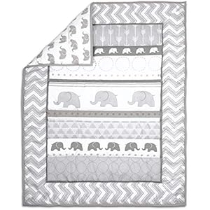 The Peanutshell Elephant Walk Crib Bedding Set – 3 Piece Unisex Nursery Set – Crib Quilt, Crib Sheet, Crib Skirt