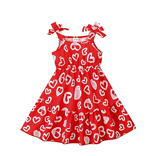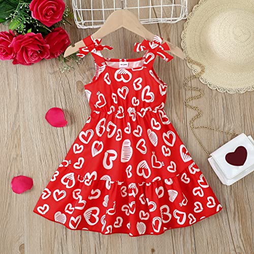 Toddler Baby Girl Dresses Kid Valentines Day Outfit Love Heart Sling Princess Dresses for Girls Birthday Party Dress (3T, Red)