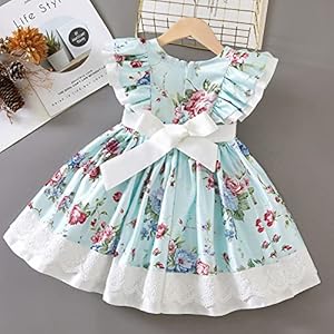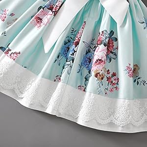 👗MATERIAL: Soft satin and lace fabric,lined with cotton,skin friendly and comfortable. Classical floral printings and delicate embroidery lace brings out the lady’s elegant temperament.Back white belt on waist highlight your girl, more attention-grabbing, great for summer weekends out of doors playwear